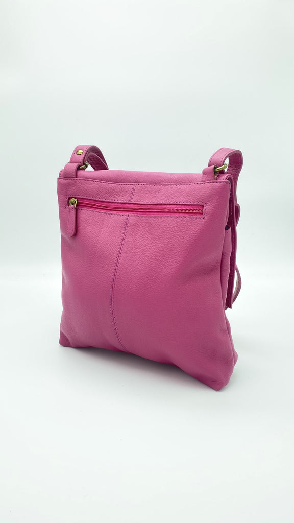 'Amanda' Milled Leather Cross Body/Shoulder Bag One of the Vera Tucci most popular bag designs. Great to add a stylish pop of colour to every outfit. The Amanda bag features two front pouches, rear and inside zip pockets, an adjustable long strap and a flap opening with magnetic closure for additional...