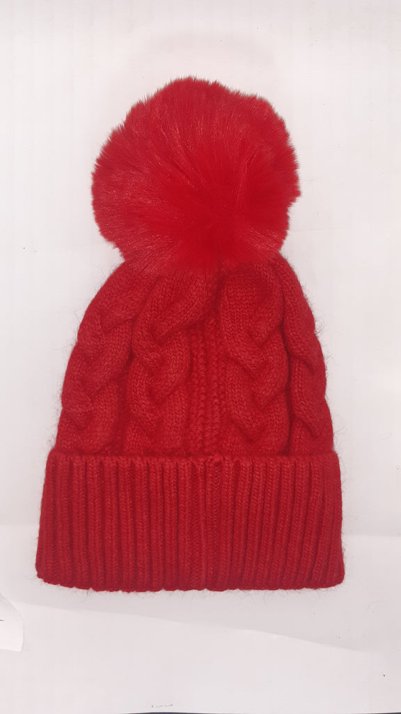 Keep yourself warm this winter with our cosy knitted hats. The fashionable fur pom pom, and wide range of colours, makes a great choice of gift for all ages. The classic design means it can be easily styled with all outfits. Limited stock available.