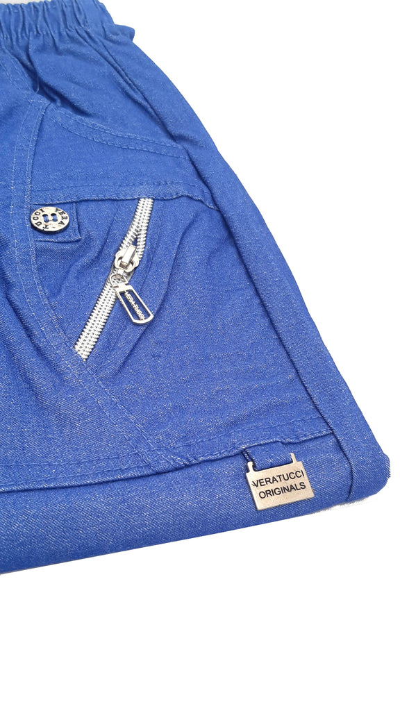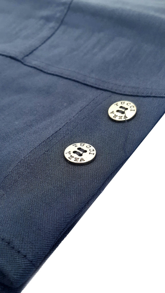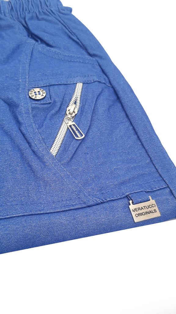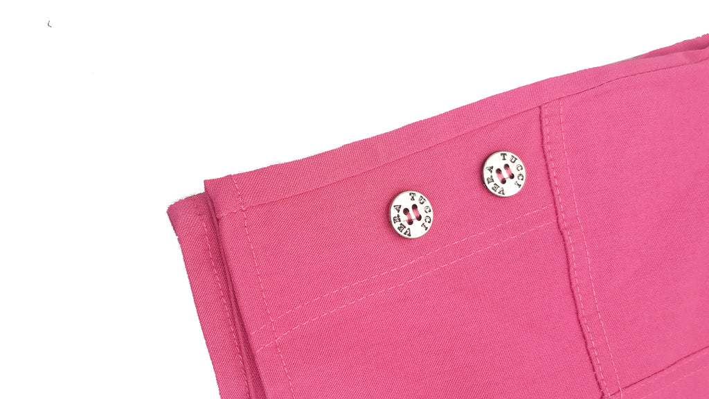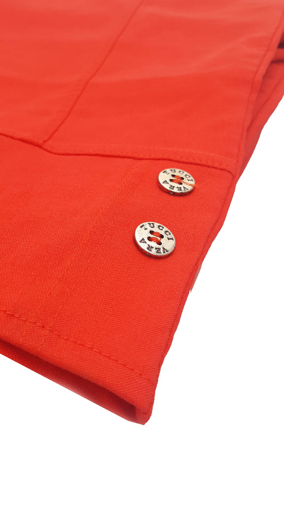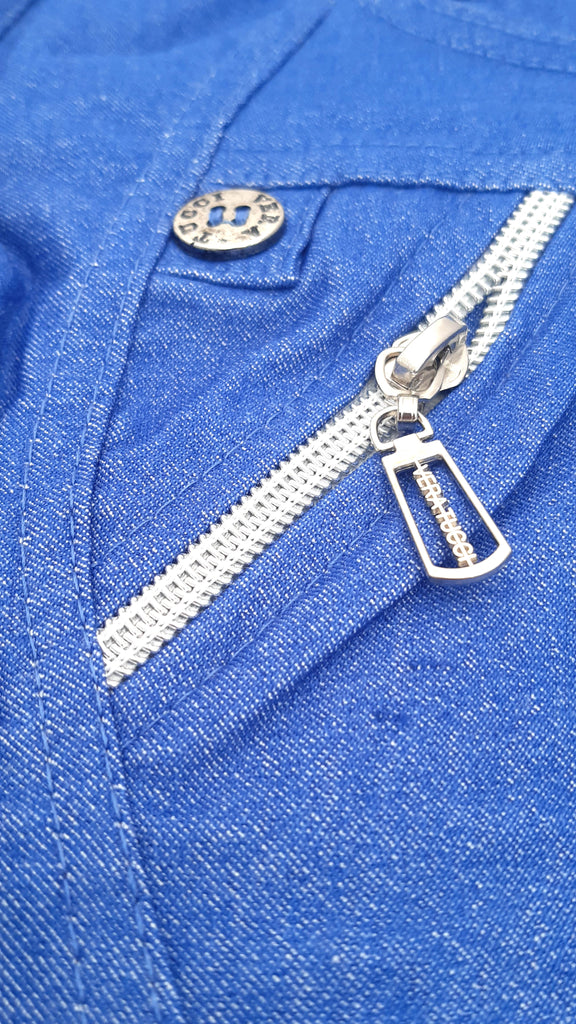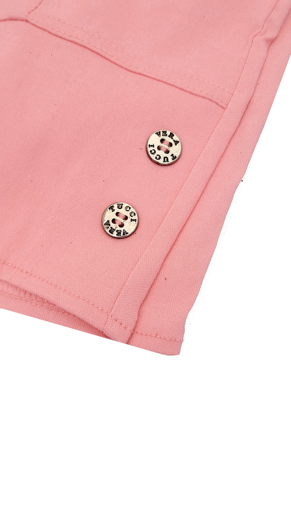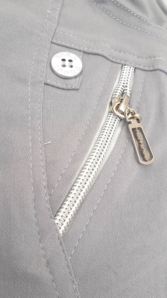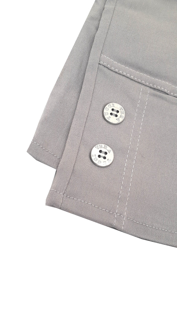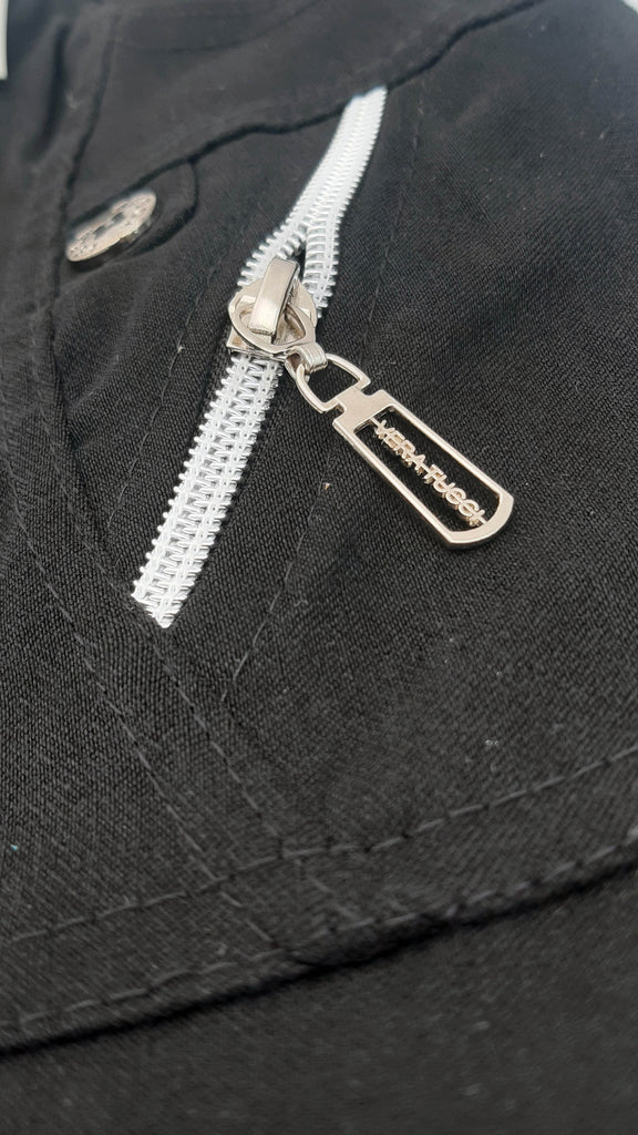 - Elastischer Bund, Reißverschlusstaschen und Knopfdetails an der Wade mit Vera Tucci-Branding